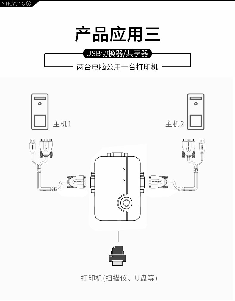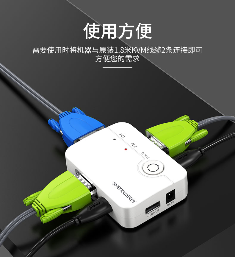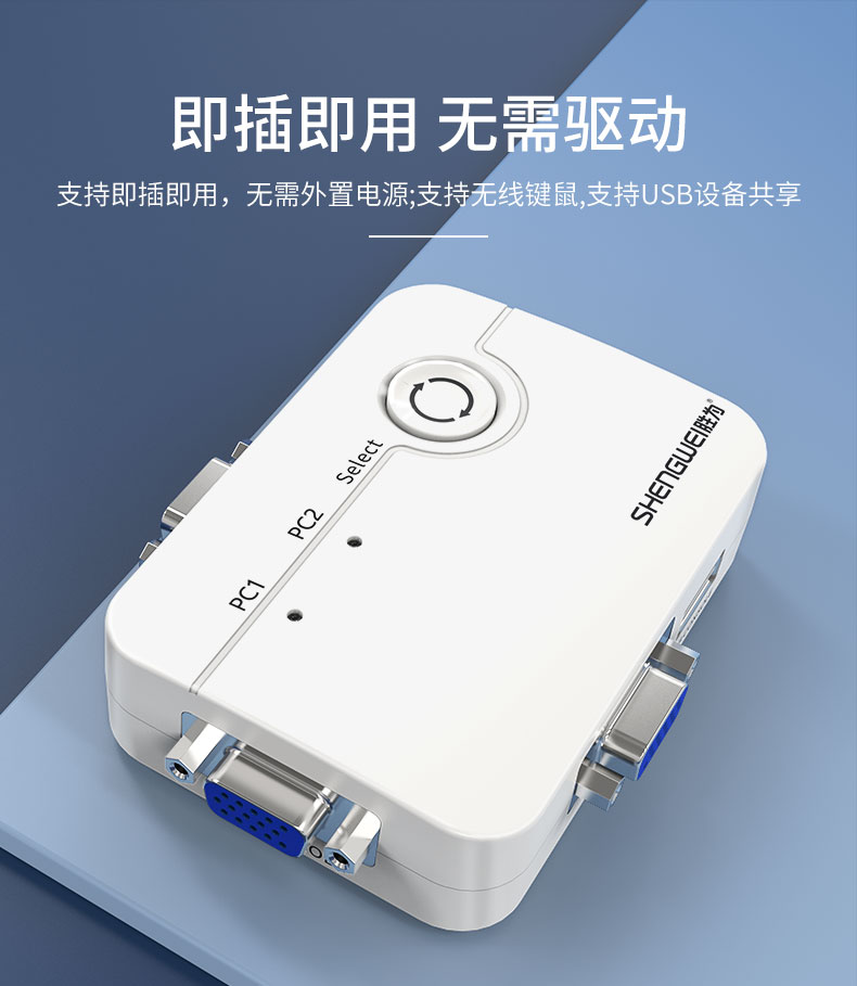 KVM切換器 2口顯示器鍵鼠USB打印機共享器 勝為KS-302A