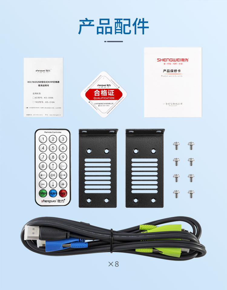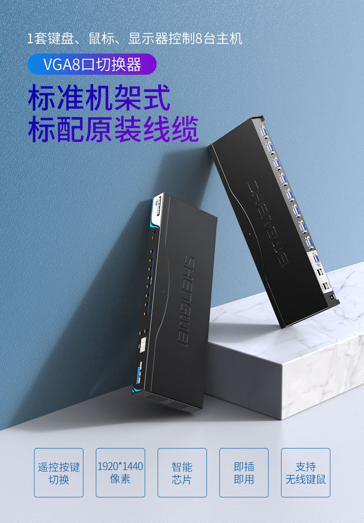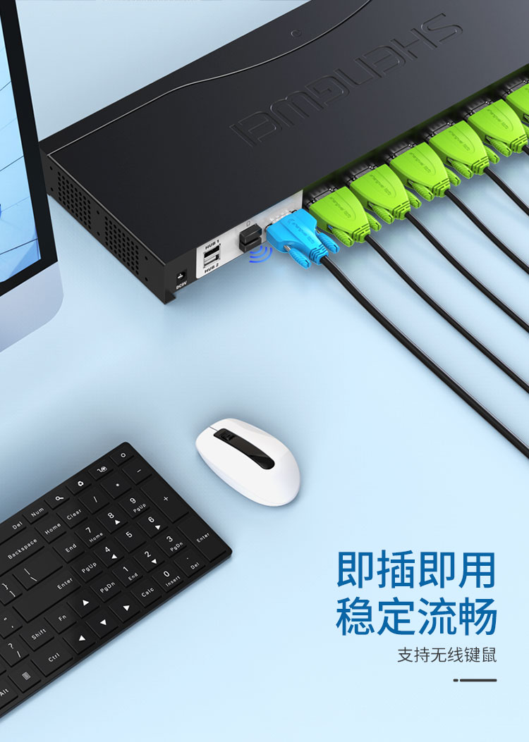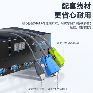 適用: 支持寬屏顯示器,分辨率高達1920*1440,送標配KVM線纜8套