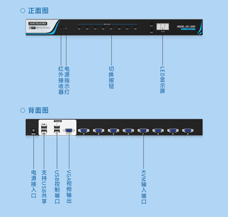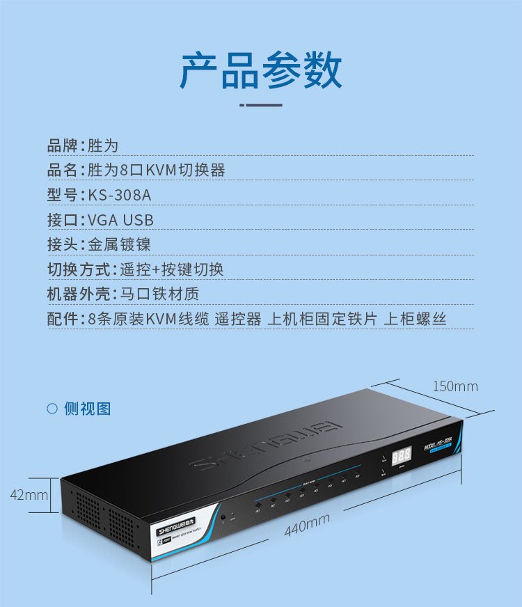 型號: 勝為 KS-308A 8口 USB手動機架式KVM切換器