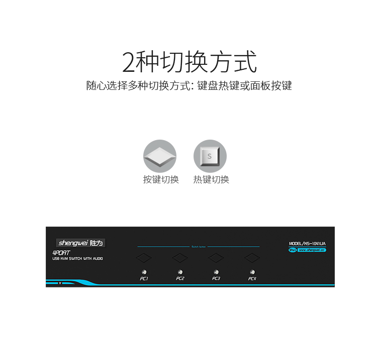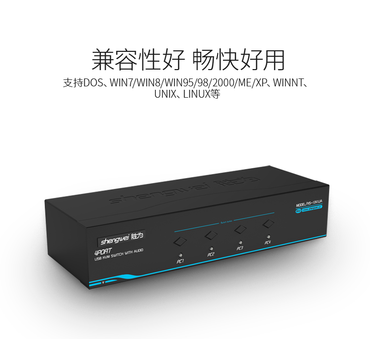 KVM自動切換器 USB鍵盤鼠標 勝為4口配線帶音頻 四進一出KS-1041UA