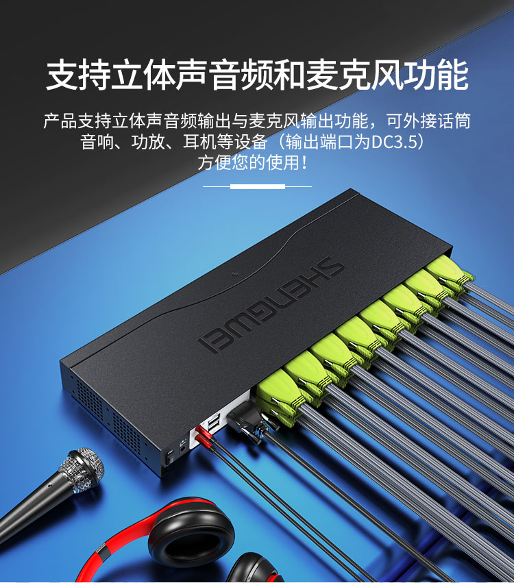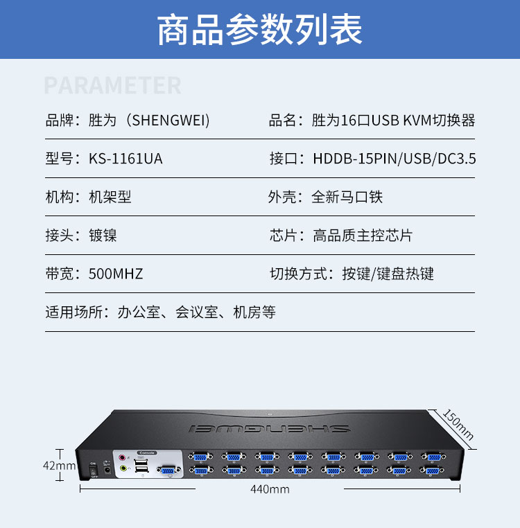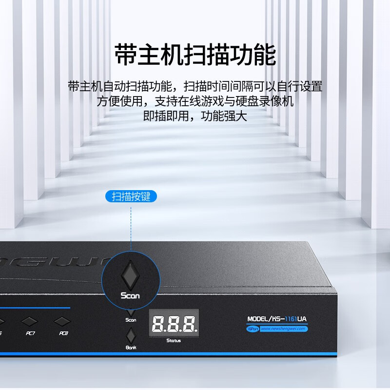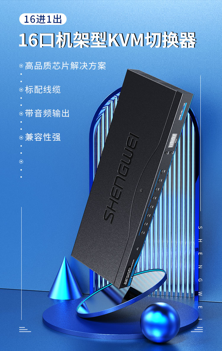 KVM自動切換器USB鍵盤鼠標 勝為16口配線機架型帶音頻十六進一出VGA多電腦切換共享器 KS-1161UA
