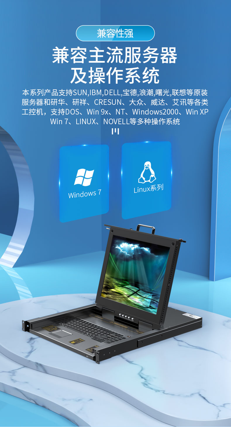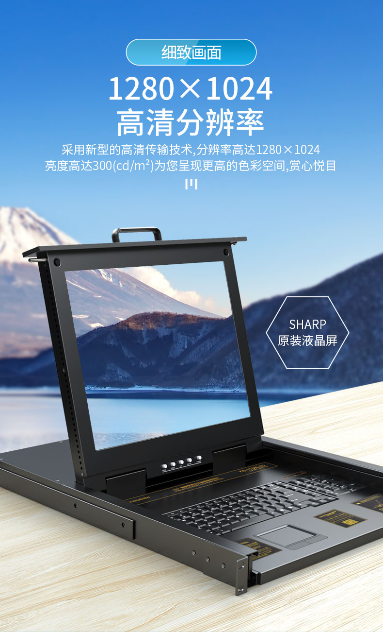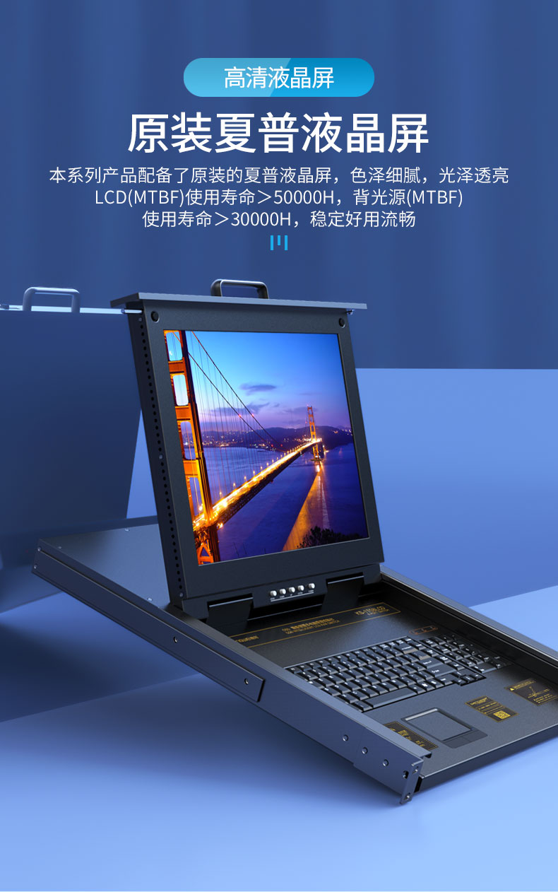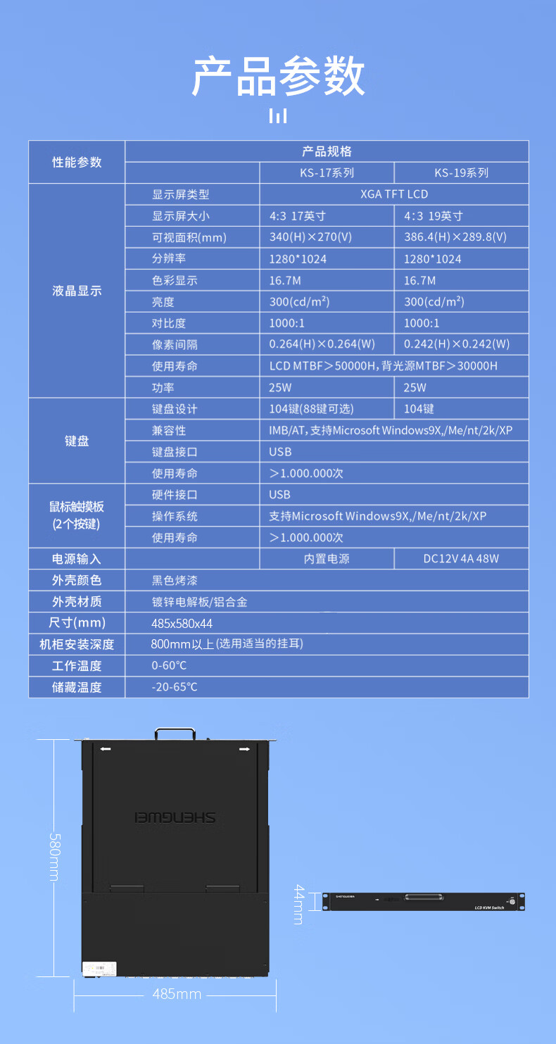 外殼:四合一KVM一體機,17英寸屏,鐵殼,黑色,機架型