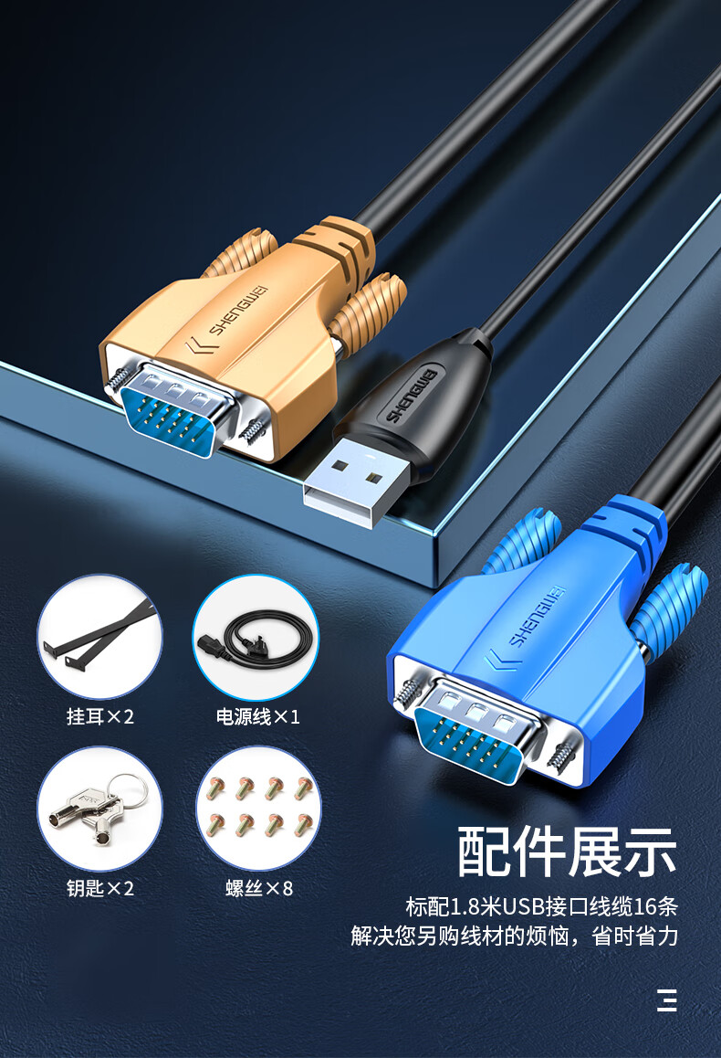 規(guī)格:8進1出,熱鍵切換+OSD菜單切換,配8條1.8米線纜