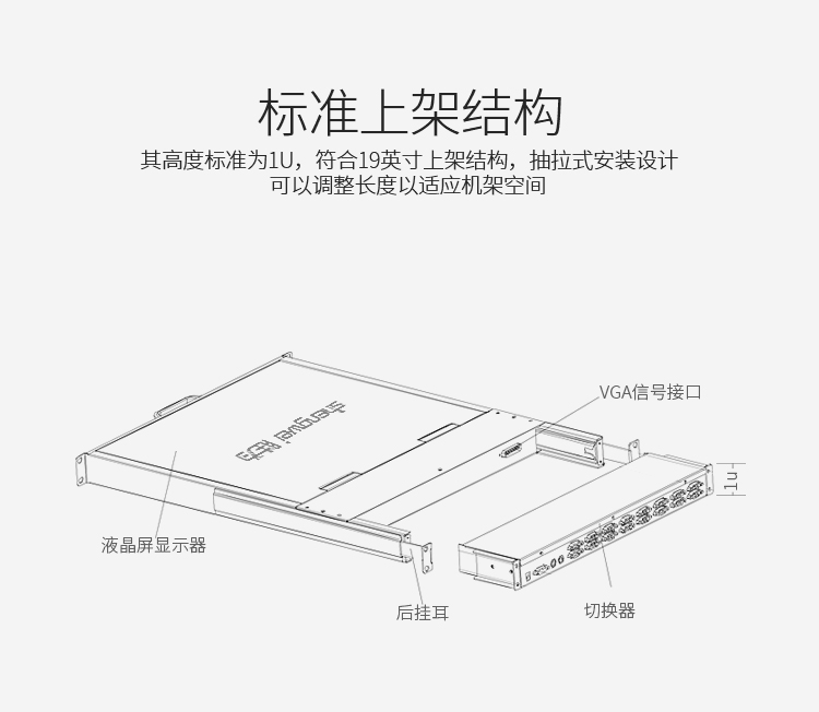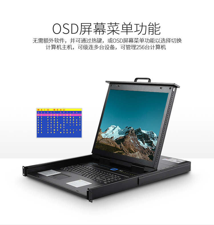 外殼:四合一KVM一體機(jī),19英寸屏幕,鐵殼,