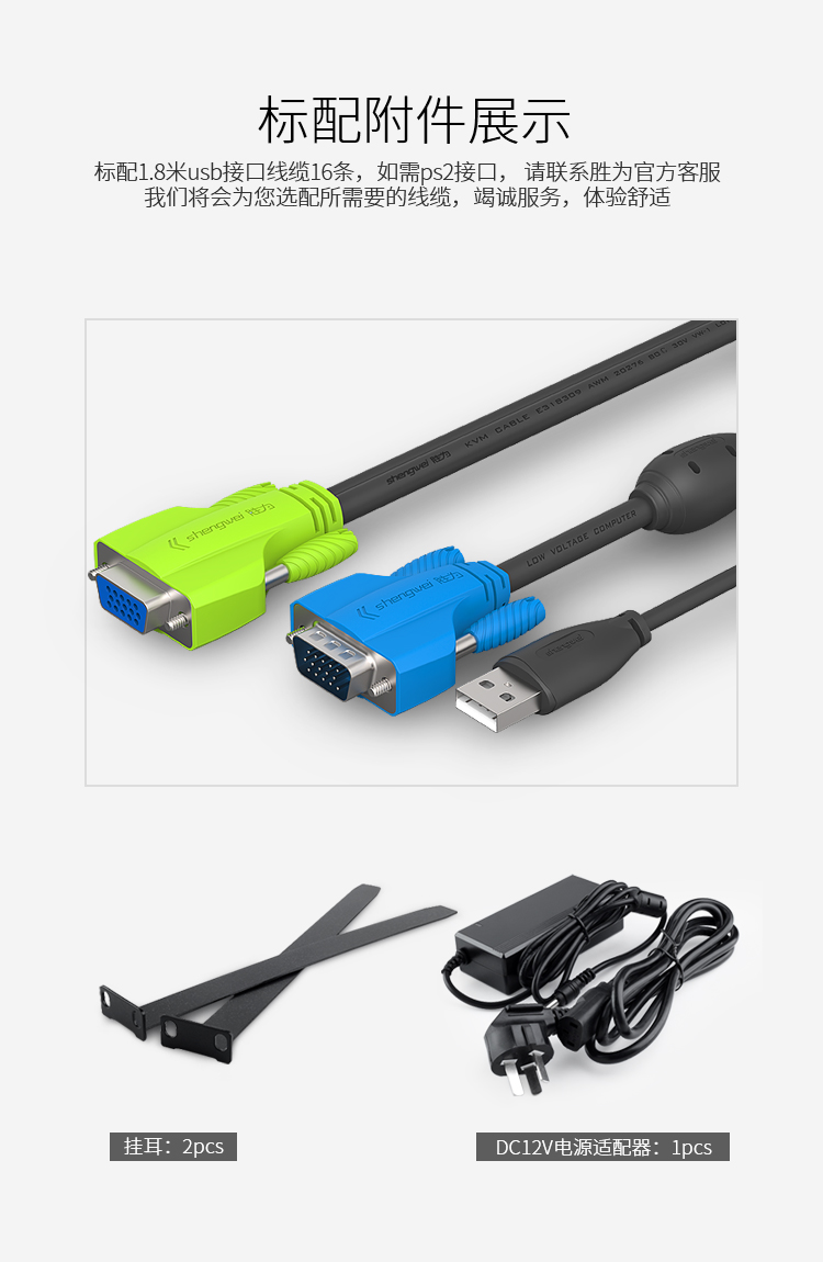 KVM切換器16口 帶19英寸LCD顯示器配線 勝為 16進(jìn)1出 KS-1916LCD