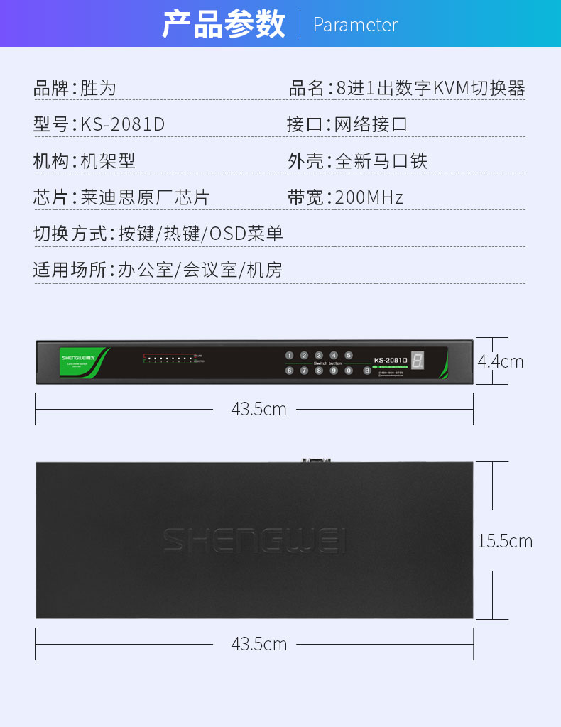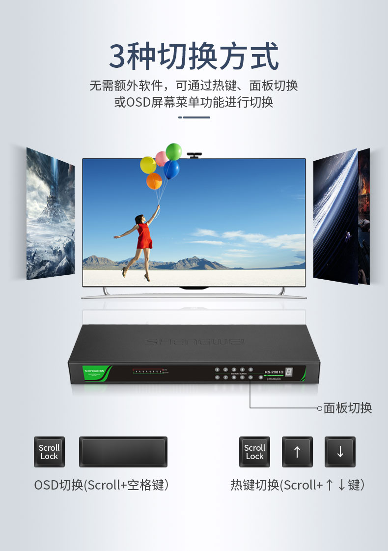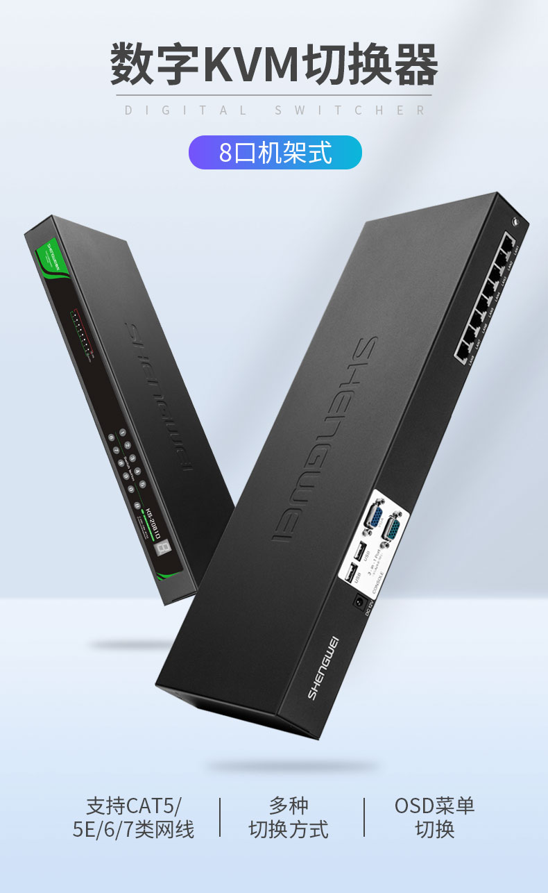 數(shù)字KVM切換器8口 視頻切屏器8進(jìn)1出 機(jī)架式網(wǎng)絡(luò)轉(zhuǎn)換器鍵鼠共享支持遠(yuǎn)程 KS-2081D