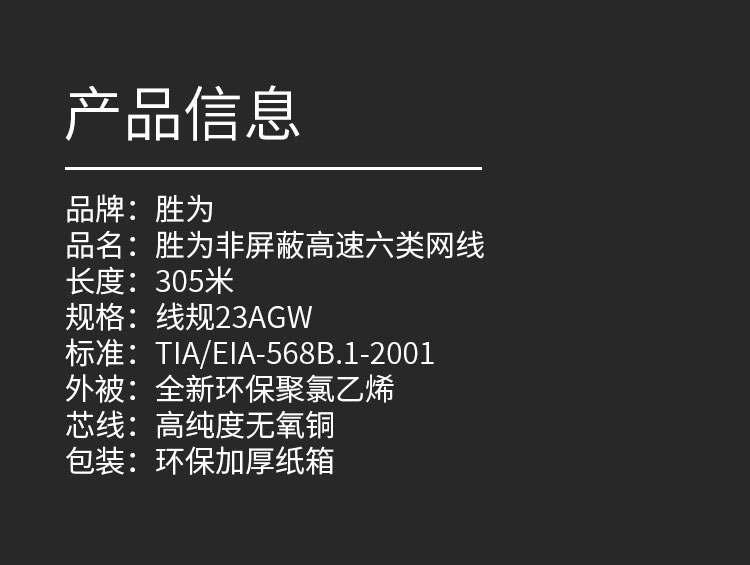 工程六類網(wǎng)線【0.57純銅線芯】勝為非屏蔽千兆網(wǎng)線家用網(wǎng)絡(luò)布線純銅雙絞線305米/箱 CLC-6305