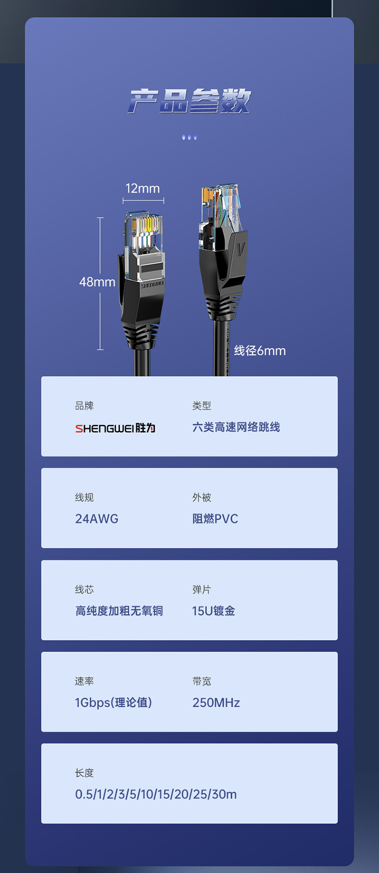 六類CAT6類網(wǎng)線 千兆網(wǎng)絡連接線1米 勝為電腦寬帶非屏蔽八芯雙絞線 家用跳線成品網(wǎng)線 LC-6010G