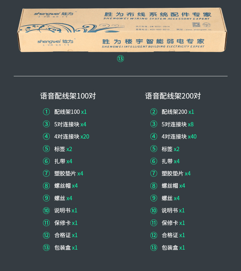 勝為工程級110語音配線架100對 1U機架式高端鍍金電話配線架 TDF-100