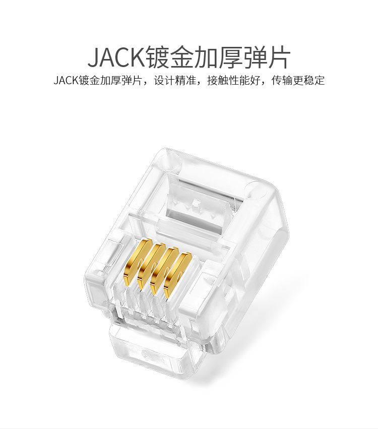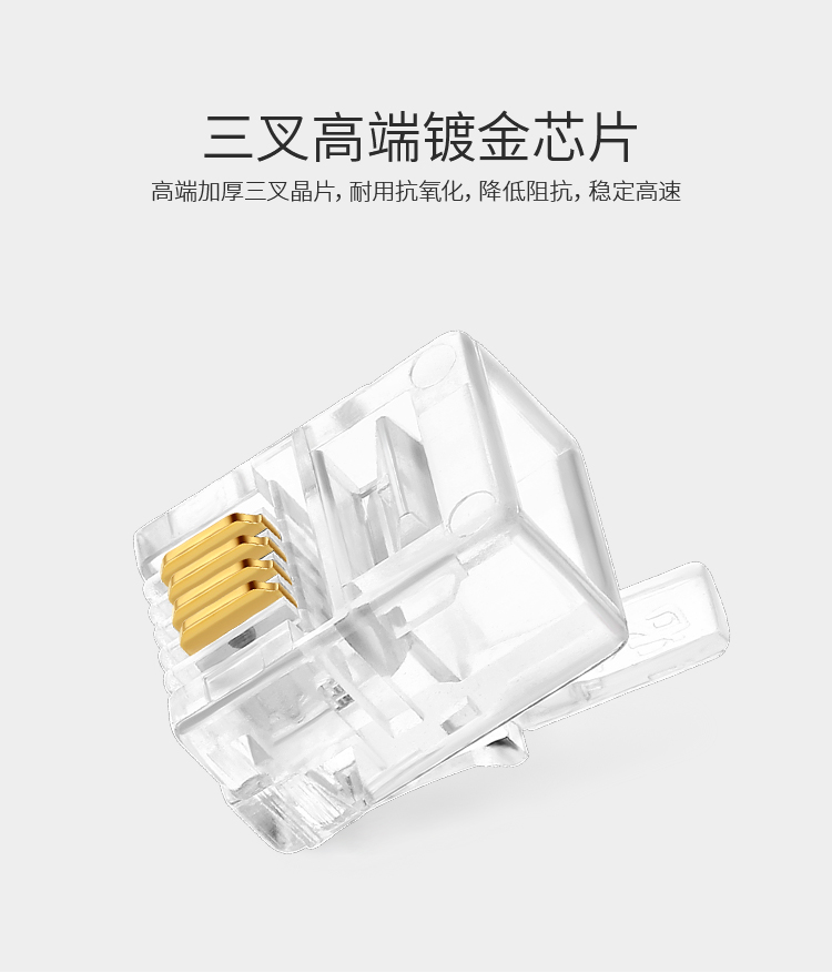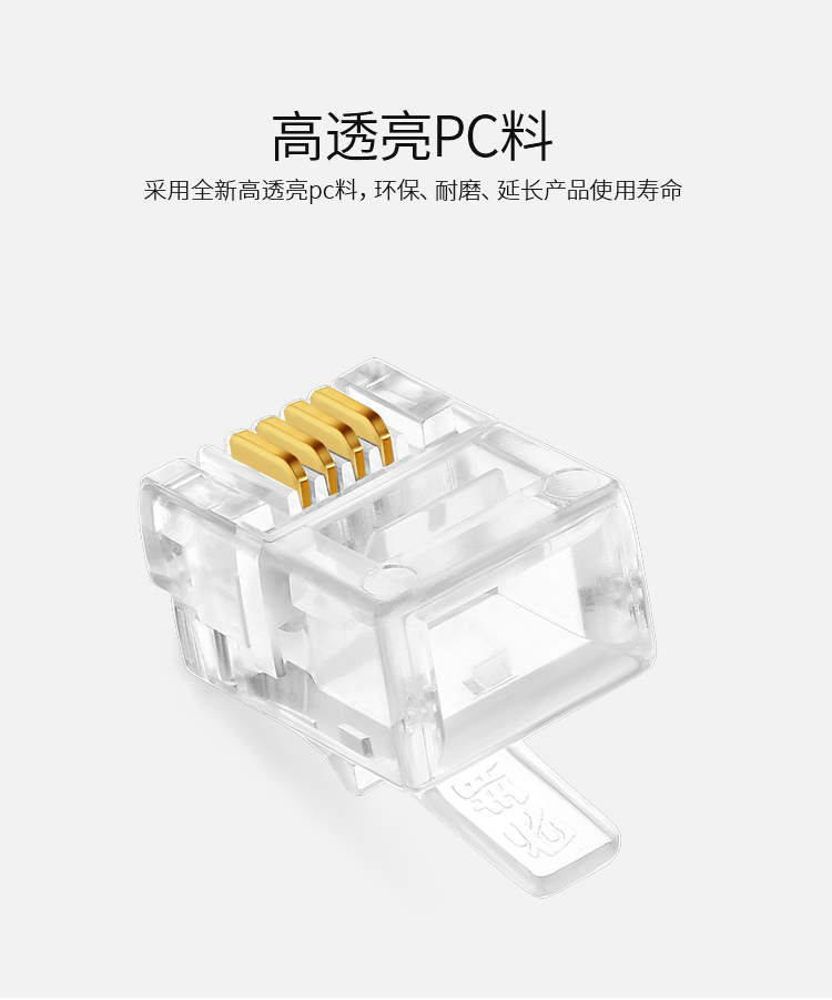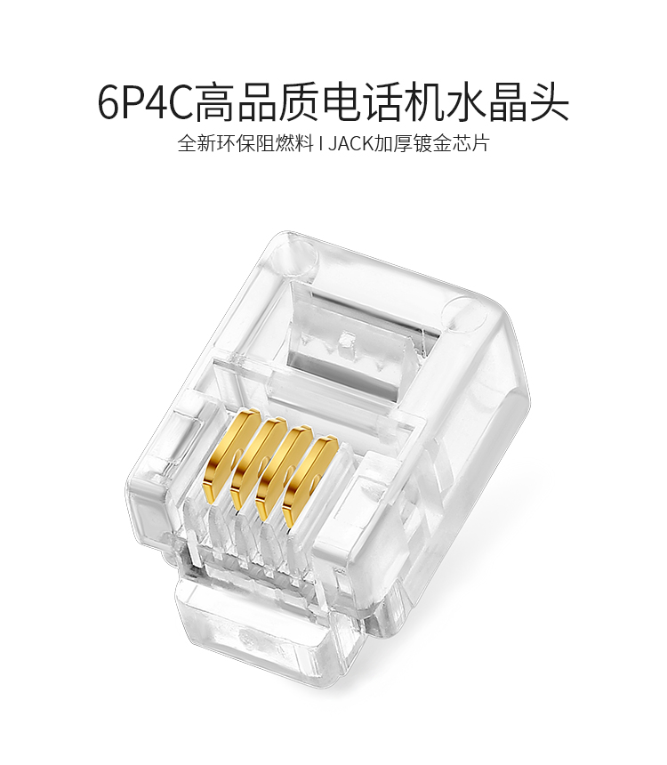 6P4C電話水晶頭 50個/盒 工程級純銅鍍金接頭 勝為4芯話筒非屏蔽RJ11接口 RC-1050