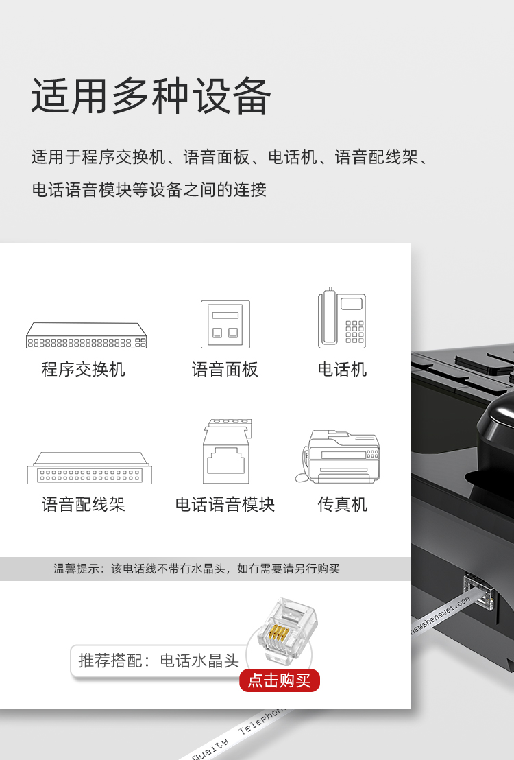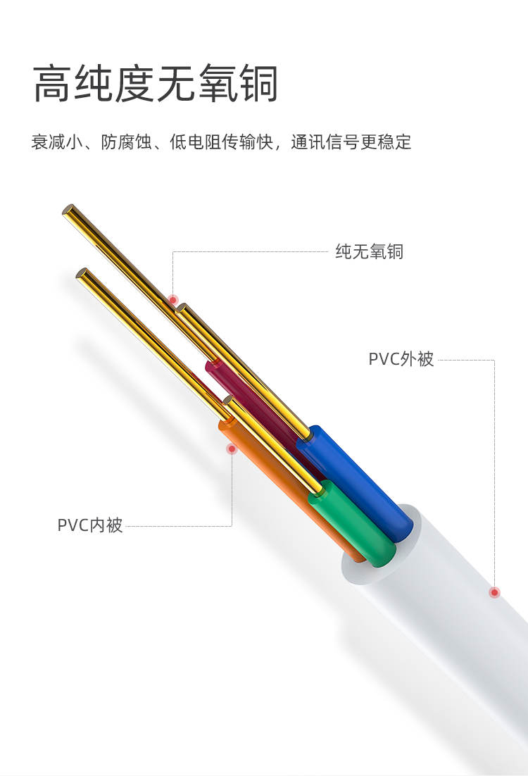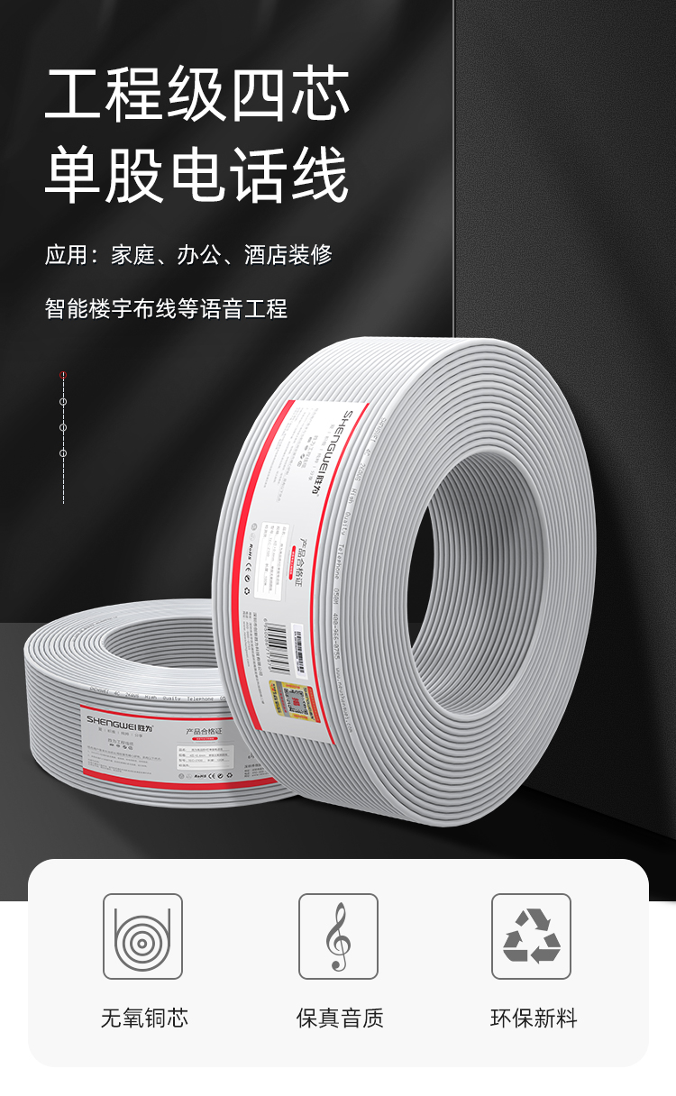 電話線 4芯單股無氧銅 勝為0.4mm座機/傳真機電話線50米 TEC-2050