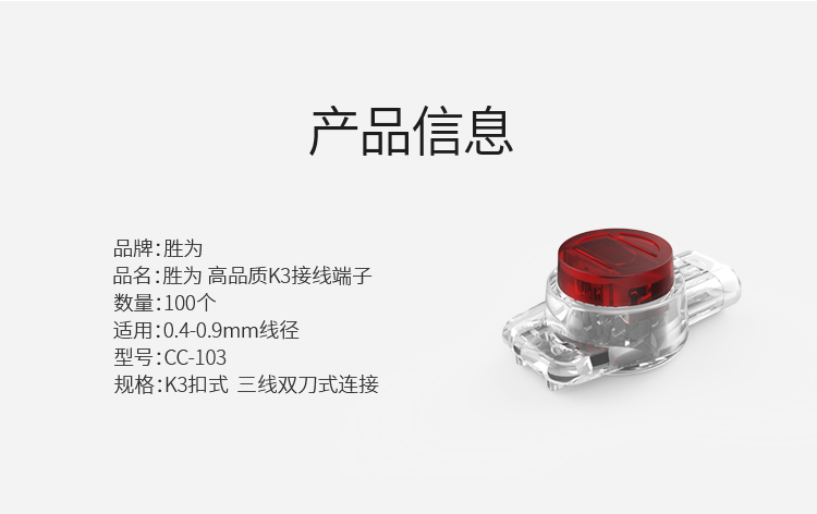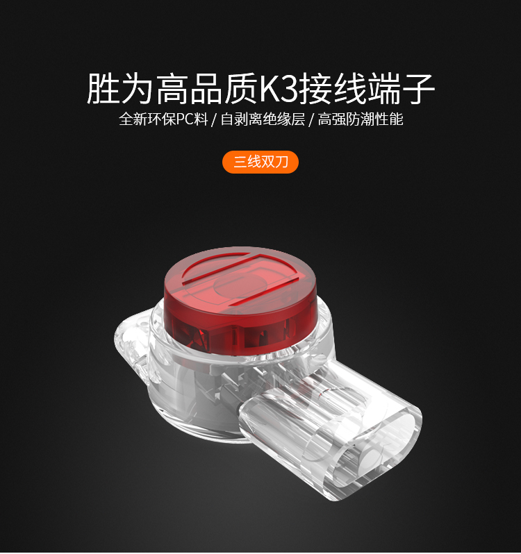 勝為接線端子 K3工程專用 環(huán)保三線雙刀雙線接頭100個(gè)/袋CC-103