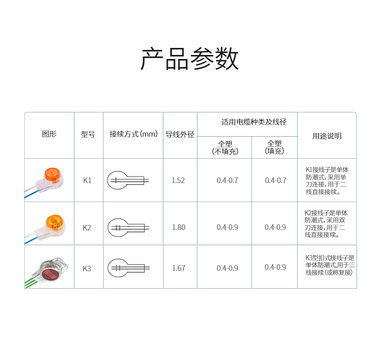 規(guī)格:K3扣式  三線雙刀式連接