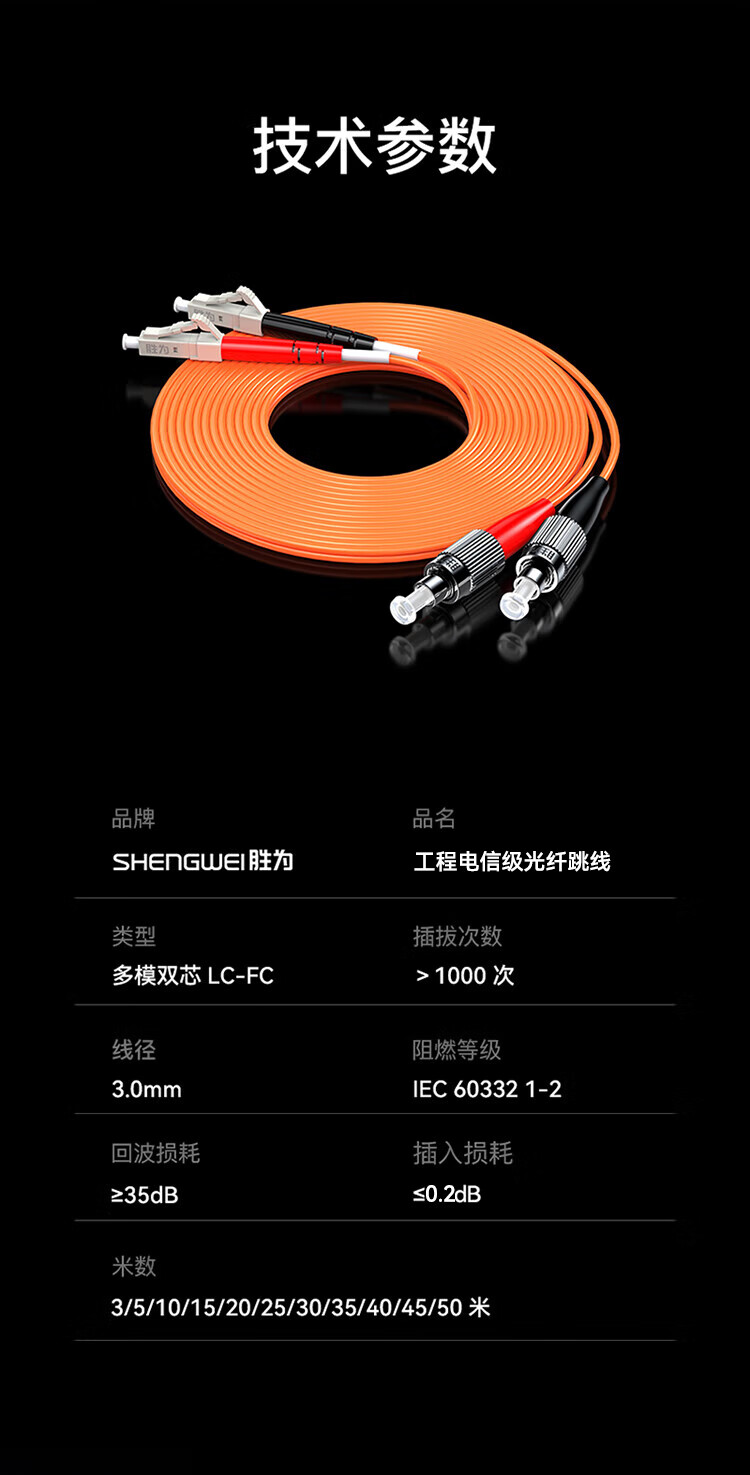 LC-FC多模雙芯光纖跳線 勝為 FMC-207