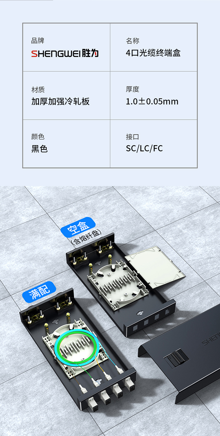 光纖終端盒4口FC多模62.5/125滿配尾纖光纜熔接盒通用 FBO-104F-M