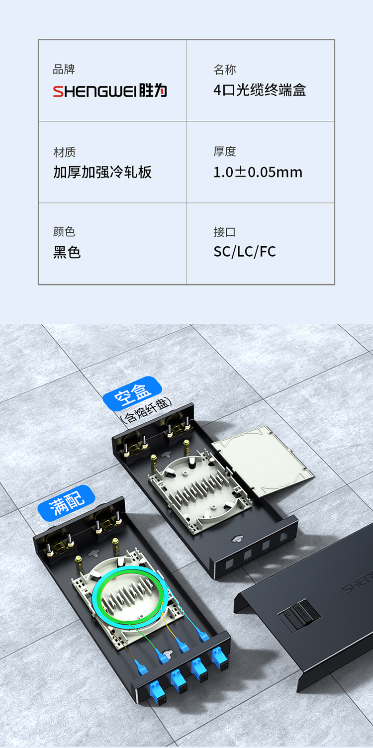 光纖終端盒4芯LC單模9/125滿配尾纖光纜熔接盒 FBO-104L-S