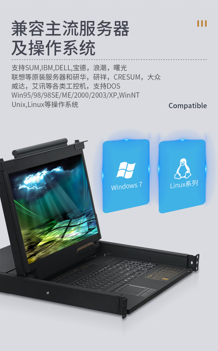 數(shù)字KVM切換器8口 17.3英寸高清寬屏LCD顯示器配VGA線 8進(jìn)一出機(jī)架式電腦轉(zhuǎn)換器 KS-2708L